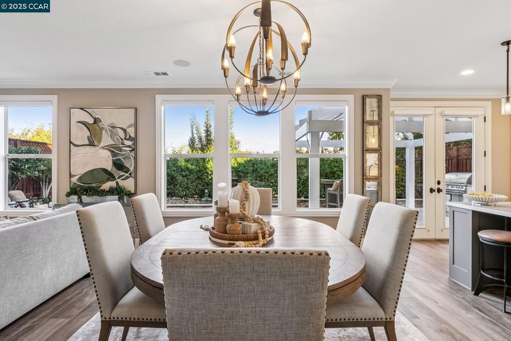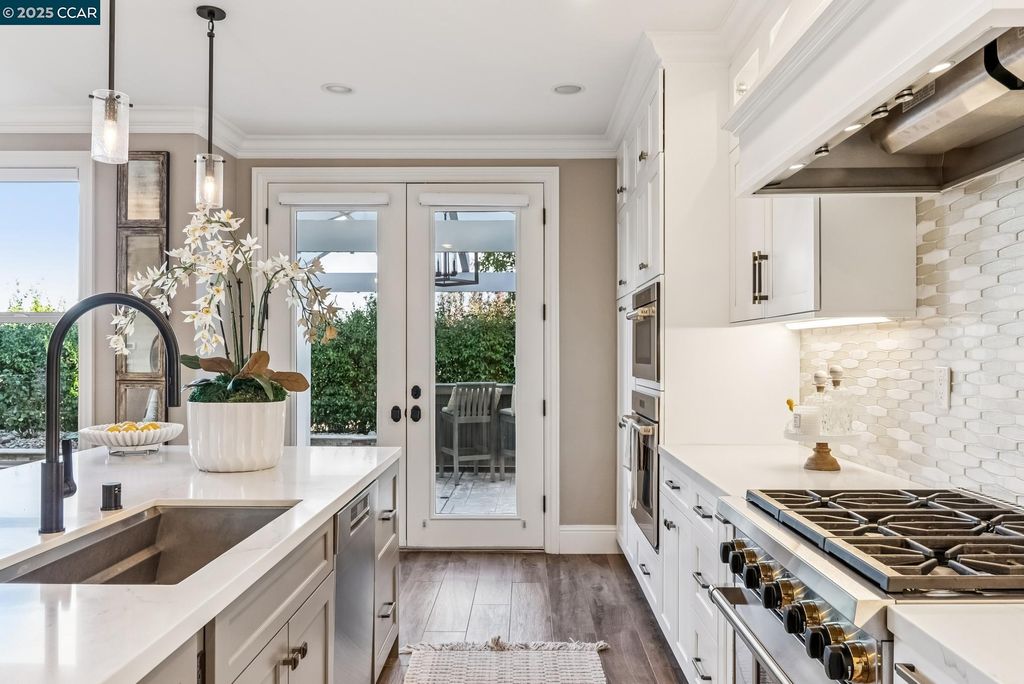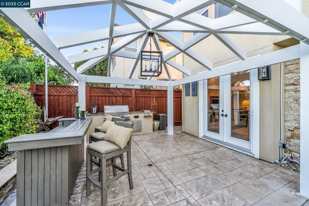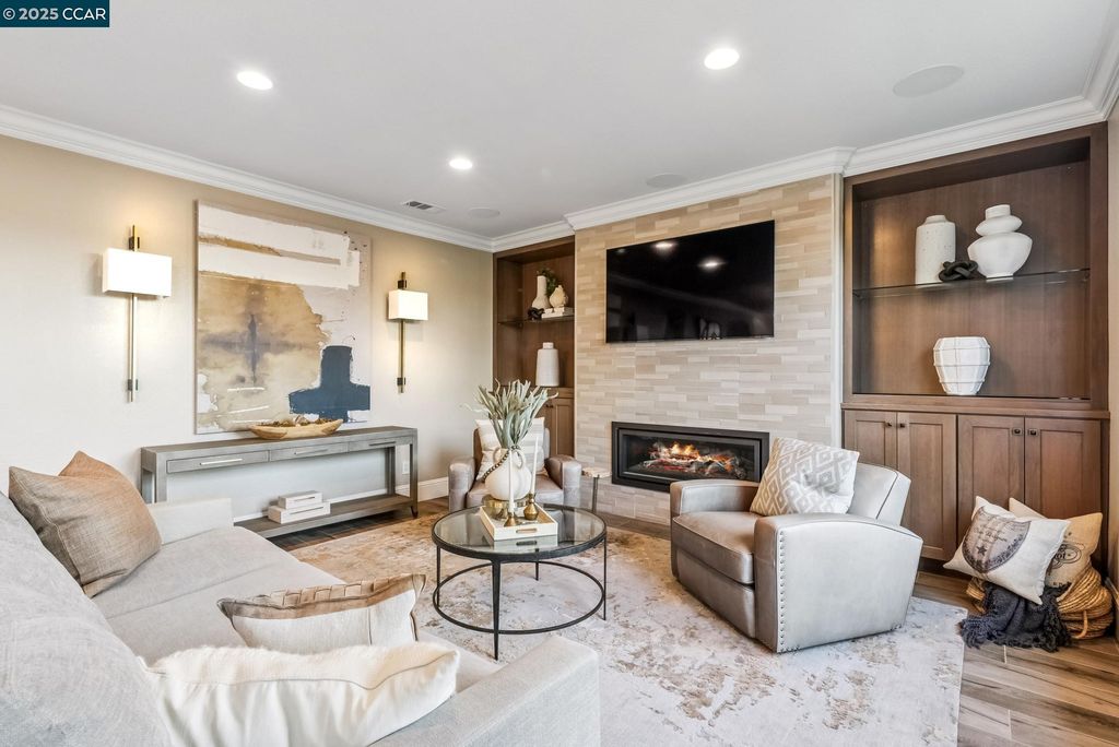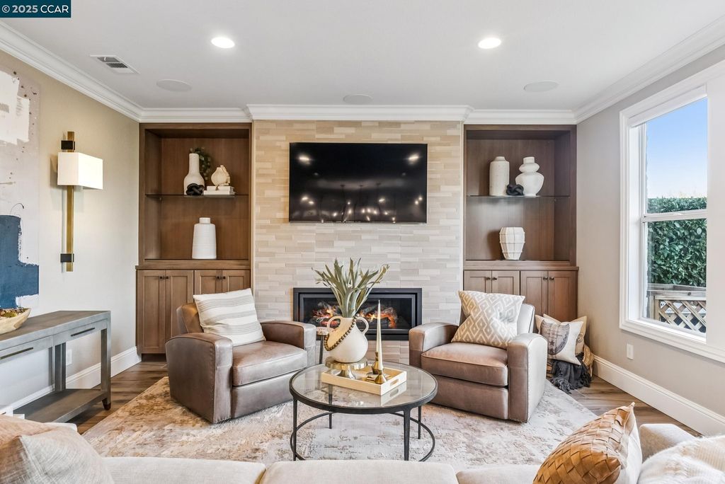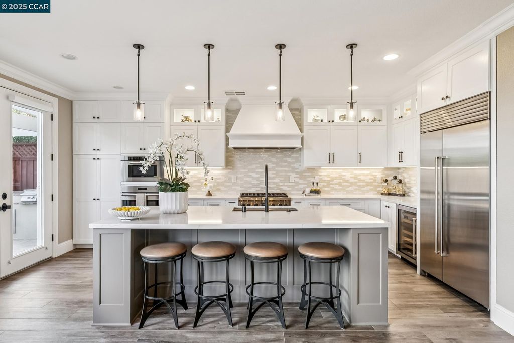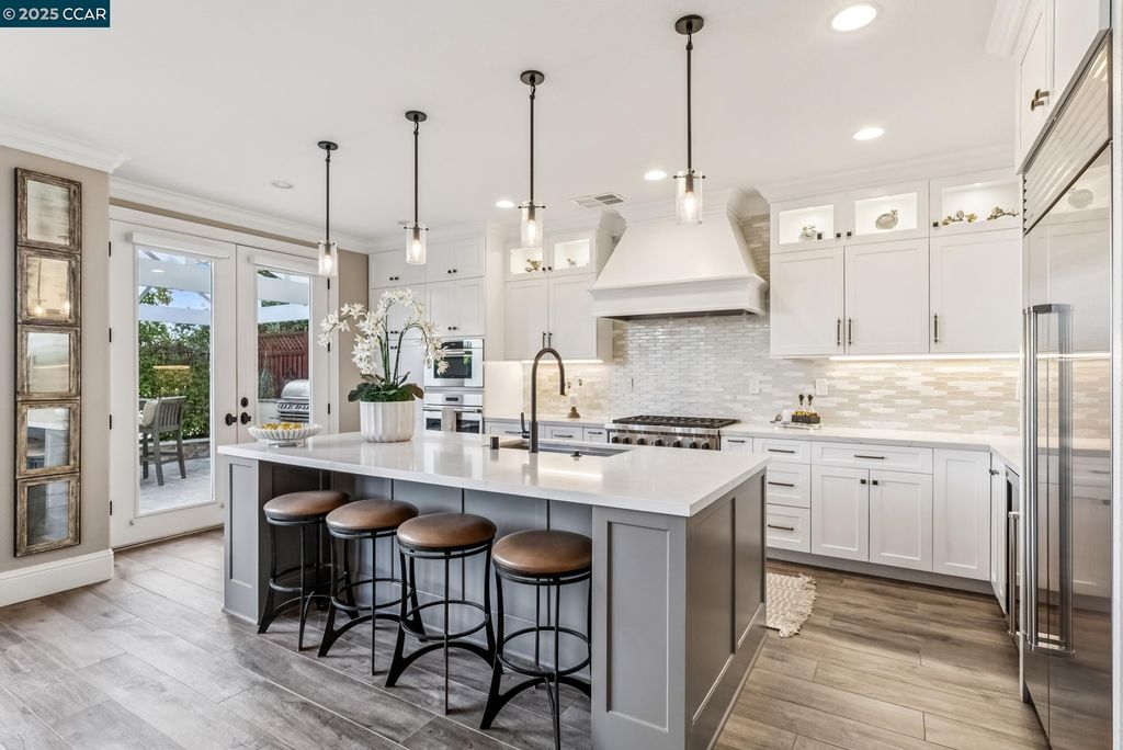 This beautifully updated former model has been extensively remodeled to offer a perfect blend of style and function. The chef's kitchen features sleek quartz countertops, high-end stainless appliances, a large island with bar seating and ample storage. Completely open to the cozy family room with custom built ins and a gas fireplace, it is the perfect place to entertain or relax. Spacious living and dining areas provide an ideal space for both entertaining and relaxation. The home boasts wood look tile floors throughout the main level and designer upgrades at every turn. With 4 bedrooms, 2.5 baths, and nearly 2,800 sq ft of light-filled living space, this home is truly exceptional. The expansive primary suite offers a huge closet and a spa-like retreat. Outside, enjoy a meticulously maintained backyard with easy-care turf, an outdoor kitchen & a pergola with bar seating. Located at the end of a quiet court, this home provides privacy & comfort. It's just steps from top-rated schools, parks & a winery, and a short drive to downtown Martinez, with its vibrant restaurants, shopping, farmers' market and marina. This is a rare opportunity in one of the area's most desirable communities