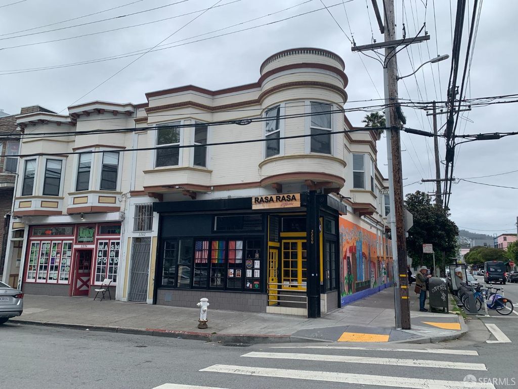 Hot Mission District Mixed Use Investment Property This asset consists of 3 Spacious Residential Flats and a Corner Commercial Unit. The commercial is an elegant Restaurant Use with an Experienced Operator providing Stability for the property. There is a Huge and Bright Top Floor Flat that is Vacant, which could appeal to an Owner Occupier. This Flat has been leased out as a 4 Bedroom, but is more traditionally a 3 Bedroom with 1 and Bathrooms. The other Two Flats have similar style usage and have their entrances on the 20th Street side of the building. There are basement storage rooms that could be leased for storage or have ADU potential. Situated on a wide lot, this is Opportunity!!!